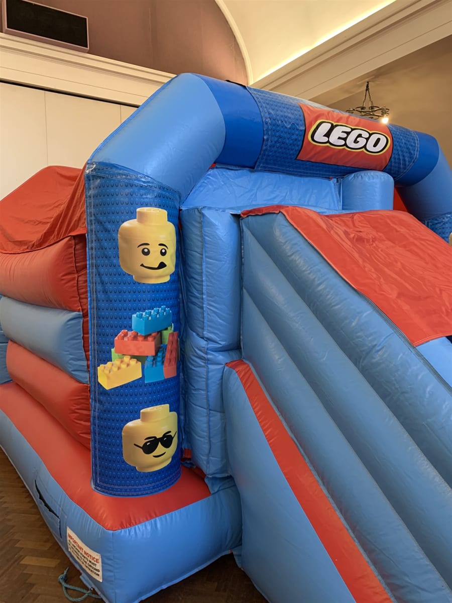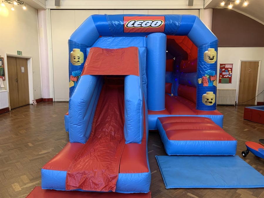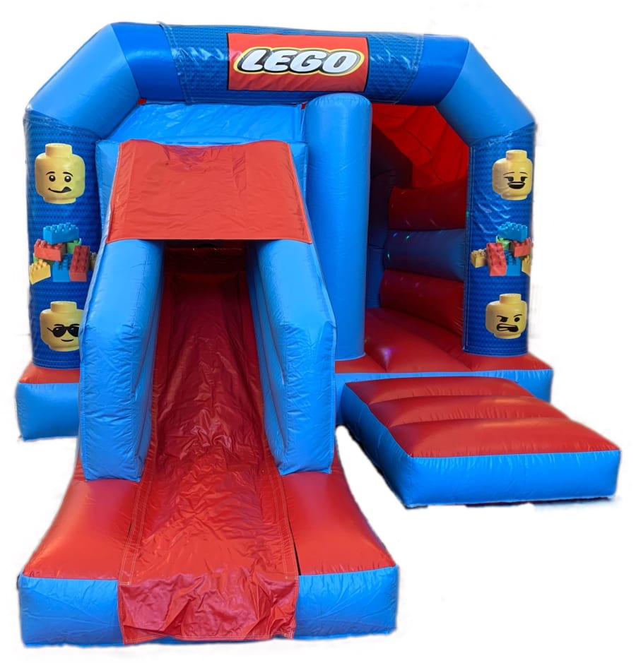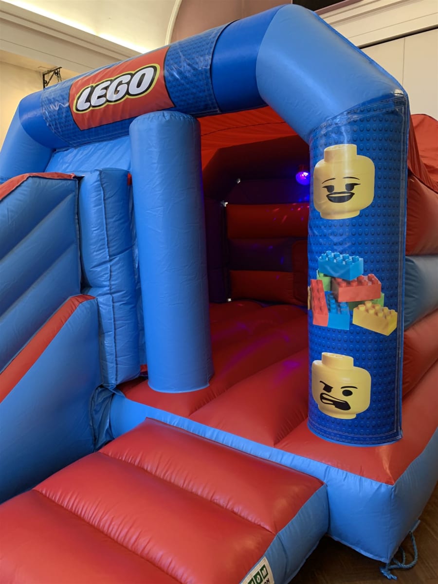 Our Lego themed disco slide combo castle is great for all ages and genders. Connect your phone or tablet up to the built in bluetooth speaker and you are the DJ at your own party, play your tunes and let the little ones dance and bounce to the flashing disco lights within.