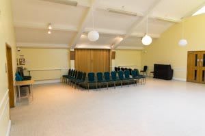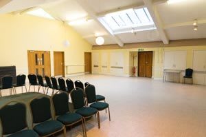 Next to the main entrance there are women’s toilets, and a single wheelchair accessible toilet including baby changing. There is also a good sized kitchen with oven and small fridge that’s available to use when hiring the hall.
