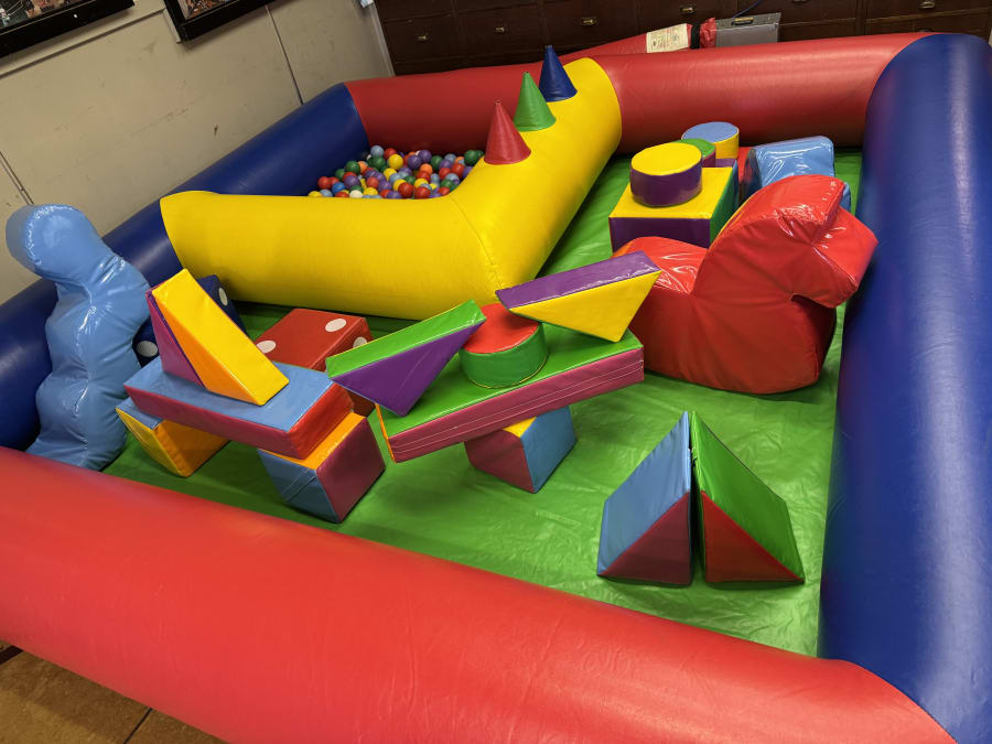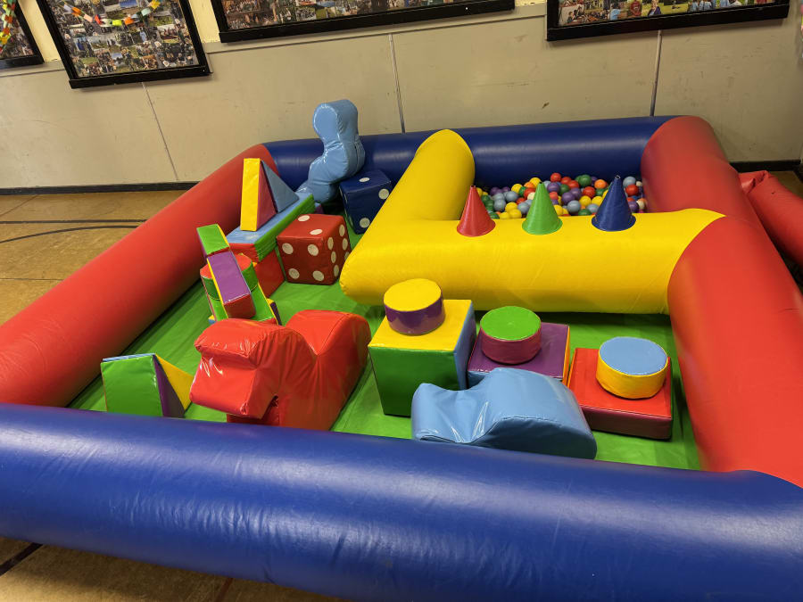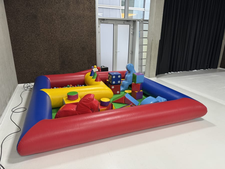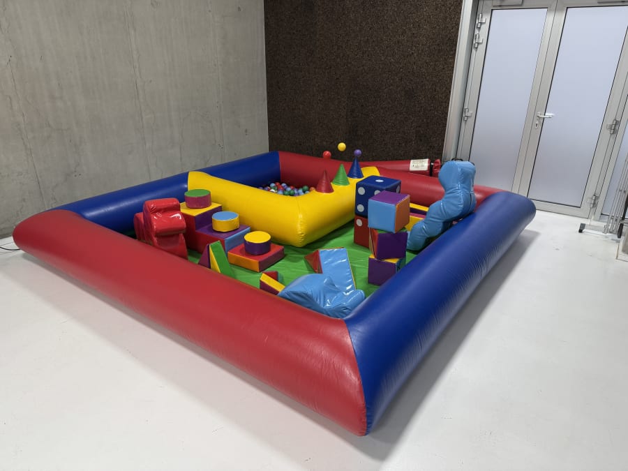 Included in the surround is a ball pool with air jugglers which allow the balls to hover above the cones. The surround itself provides a safe area for the children to play without being able to escape easily, this gives peace of mind to the parents knowing the children are safe playing in the area.