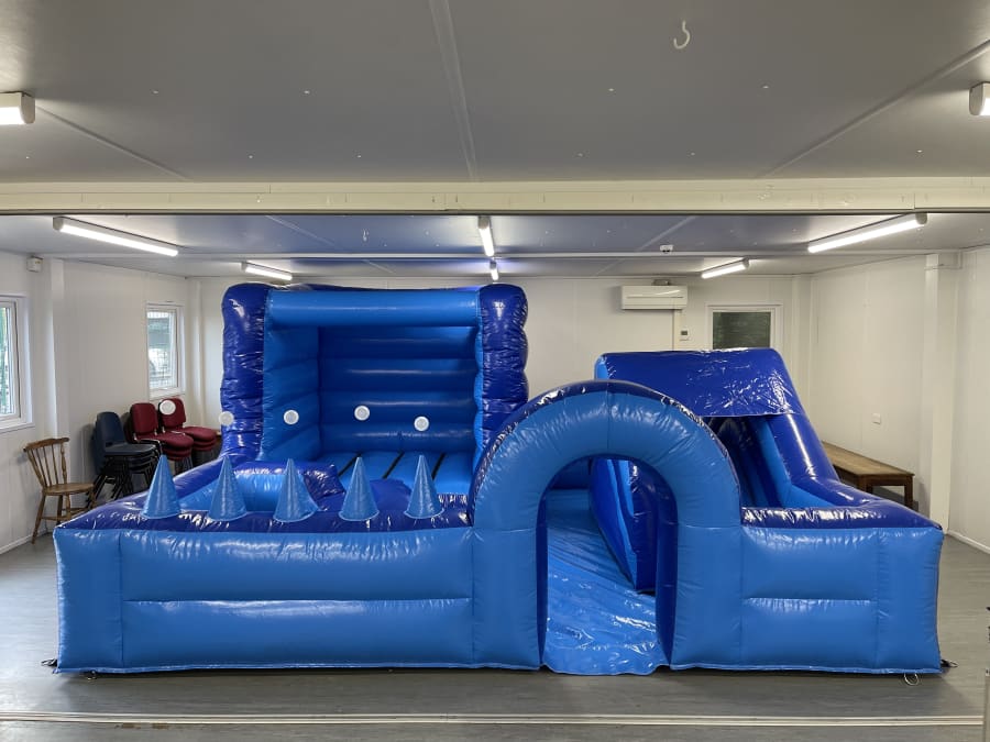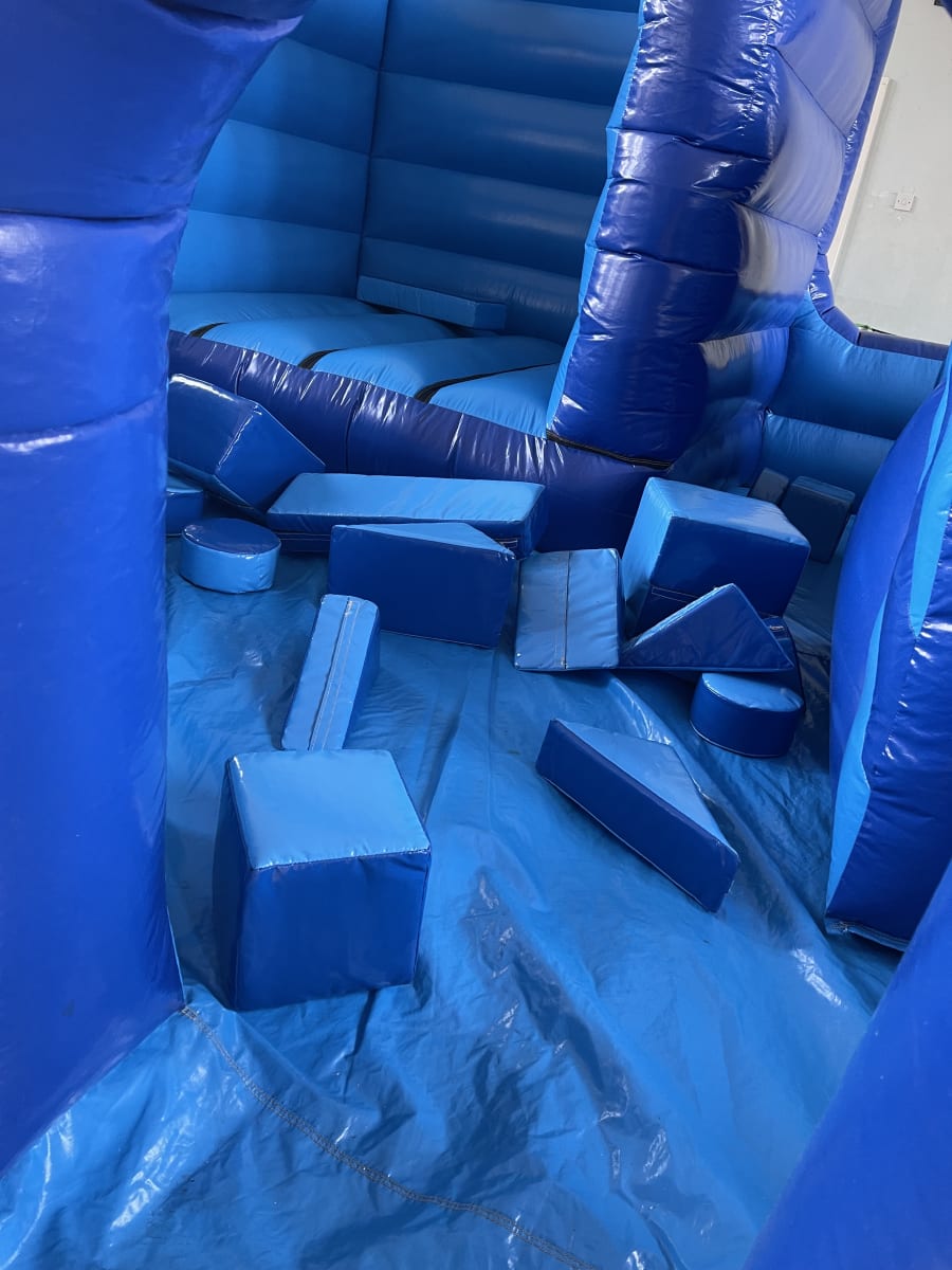 That's correct, you read it right the ultimate of party packages! So not only do you get a slide, a bouncy castle, air jugglers and an epic ball pool but you also get 18 pieces of blue/dark blue glossy soft play that matches the play park perfectly!
